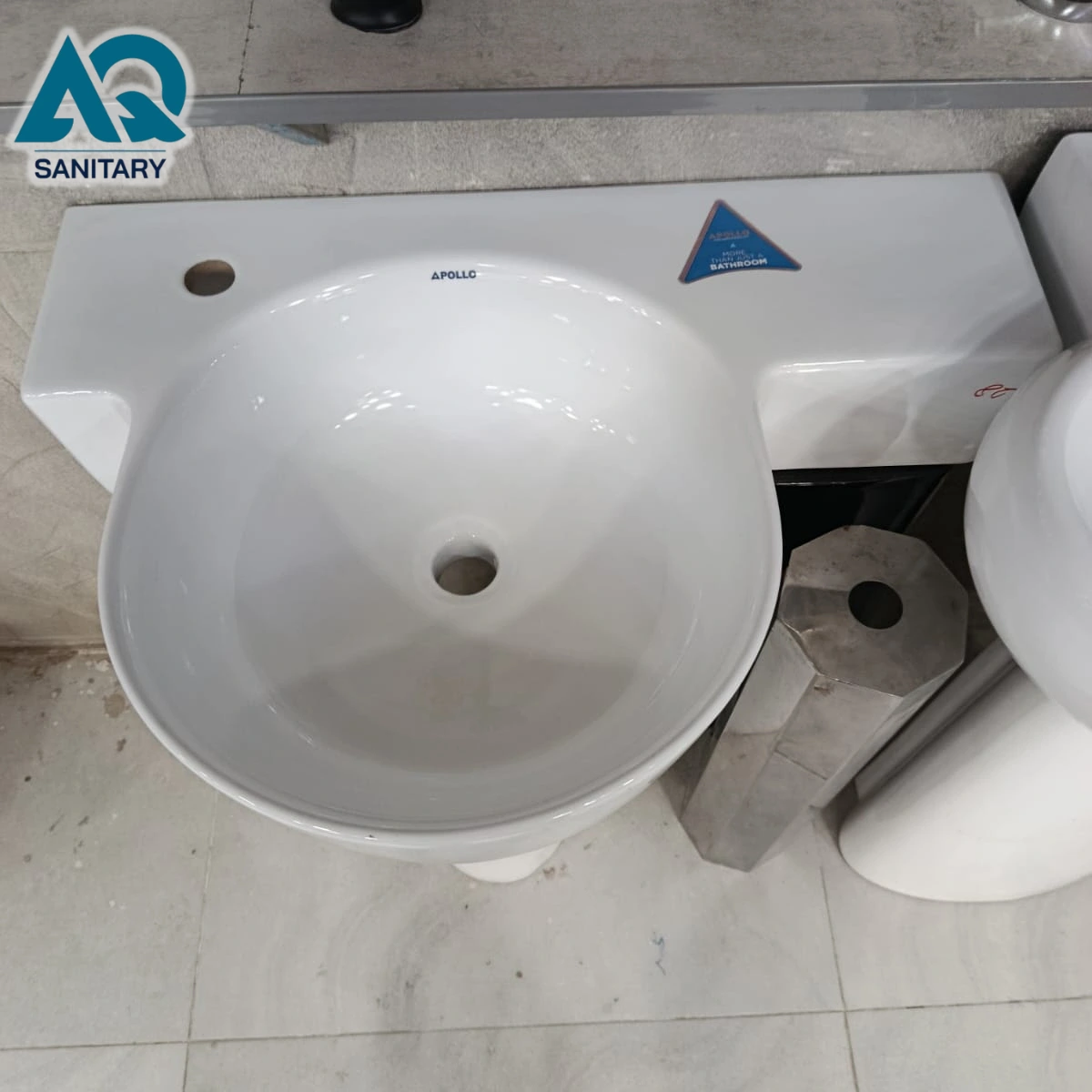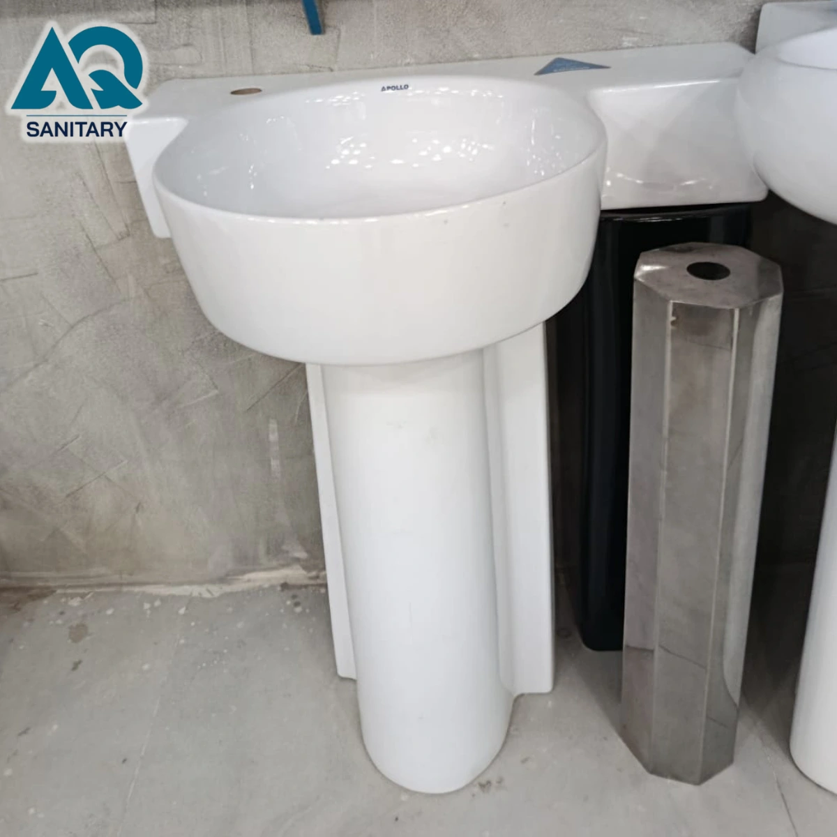Shop Apollo round pedestal wash basin at best price in Pakistan. Premium ceramic basin with sleek glossy finish, perfect for modern bathrooms. Fast delivery by AQ Sanitary.