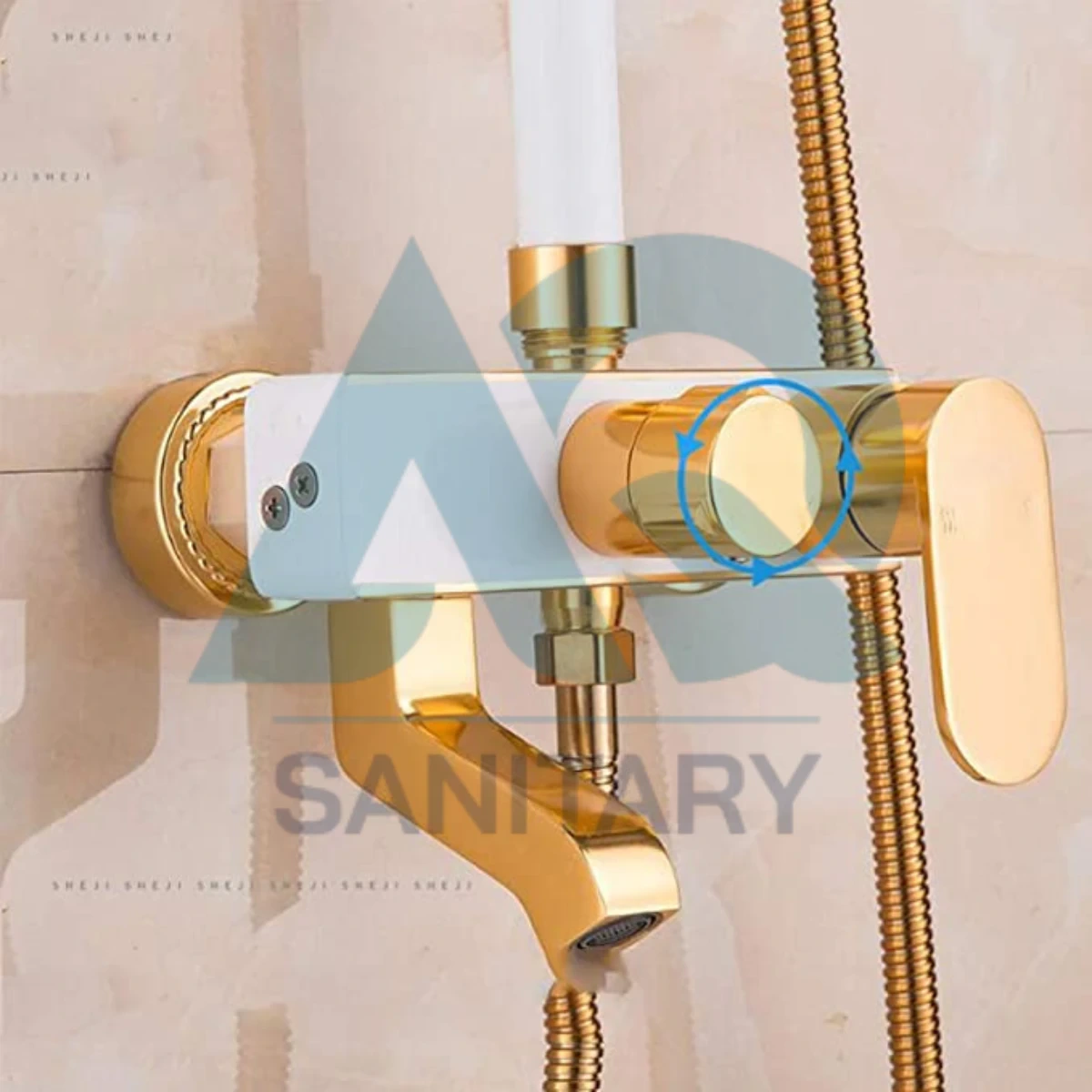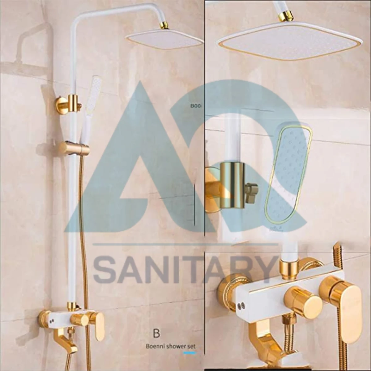 Buy luxury gold and white rain shower set from AQ Sanitary at best price in Pakistan. Complete bathroom shower system with premium finish. Cash on delivery available nationwide.