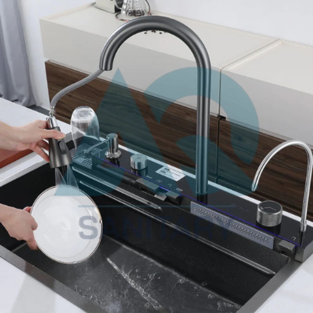 Buy multifunction stainless steel kitchen sink with built-in accessories from AQ Sanitary at best price in Pakistan. Modern design, durable quality, ideal for smart kitchens. Cash on delivery available nationwide.