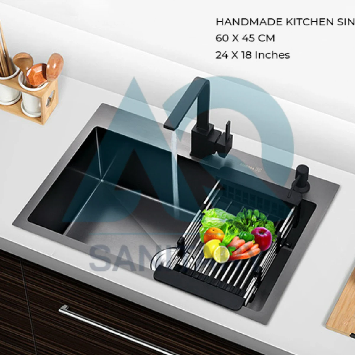 Buy handmade stainless steel kitchen sink 24×18 inches (60×45 cm) from AQ Sanitary at best price in Pakistan. Durable, modern design with accessories. Cash on delivery available nationwide.